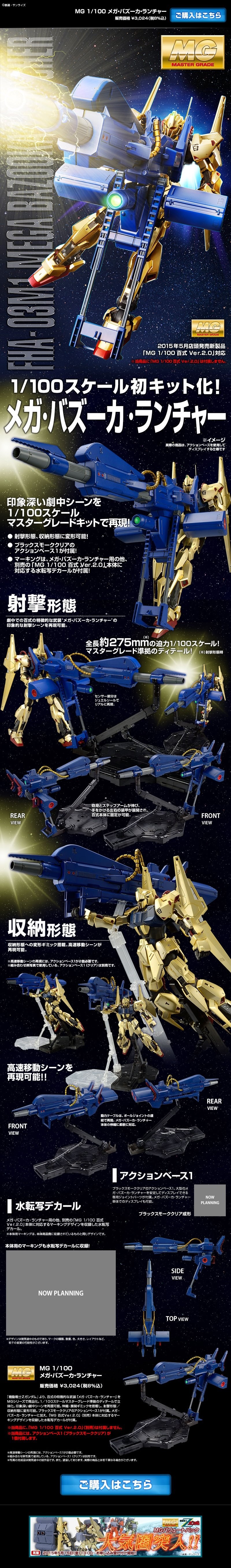 MG1/100百式Ver2.0に完全対応!「MG 1/100 メガ・バズーカ・ランチャー」プレバン限定で予約開始! : ホビログ ホビー系まとめサイト