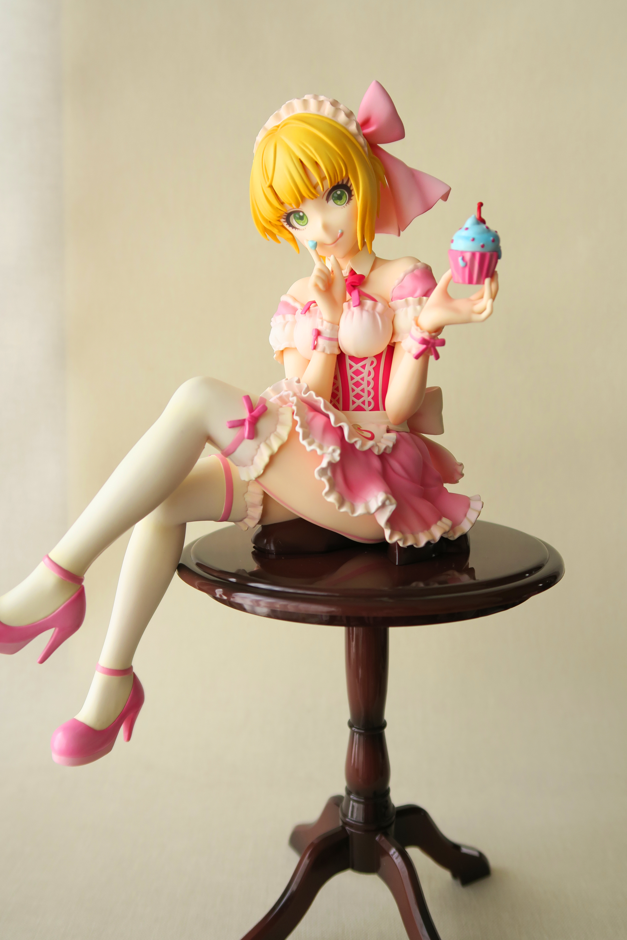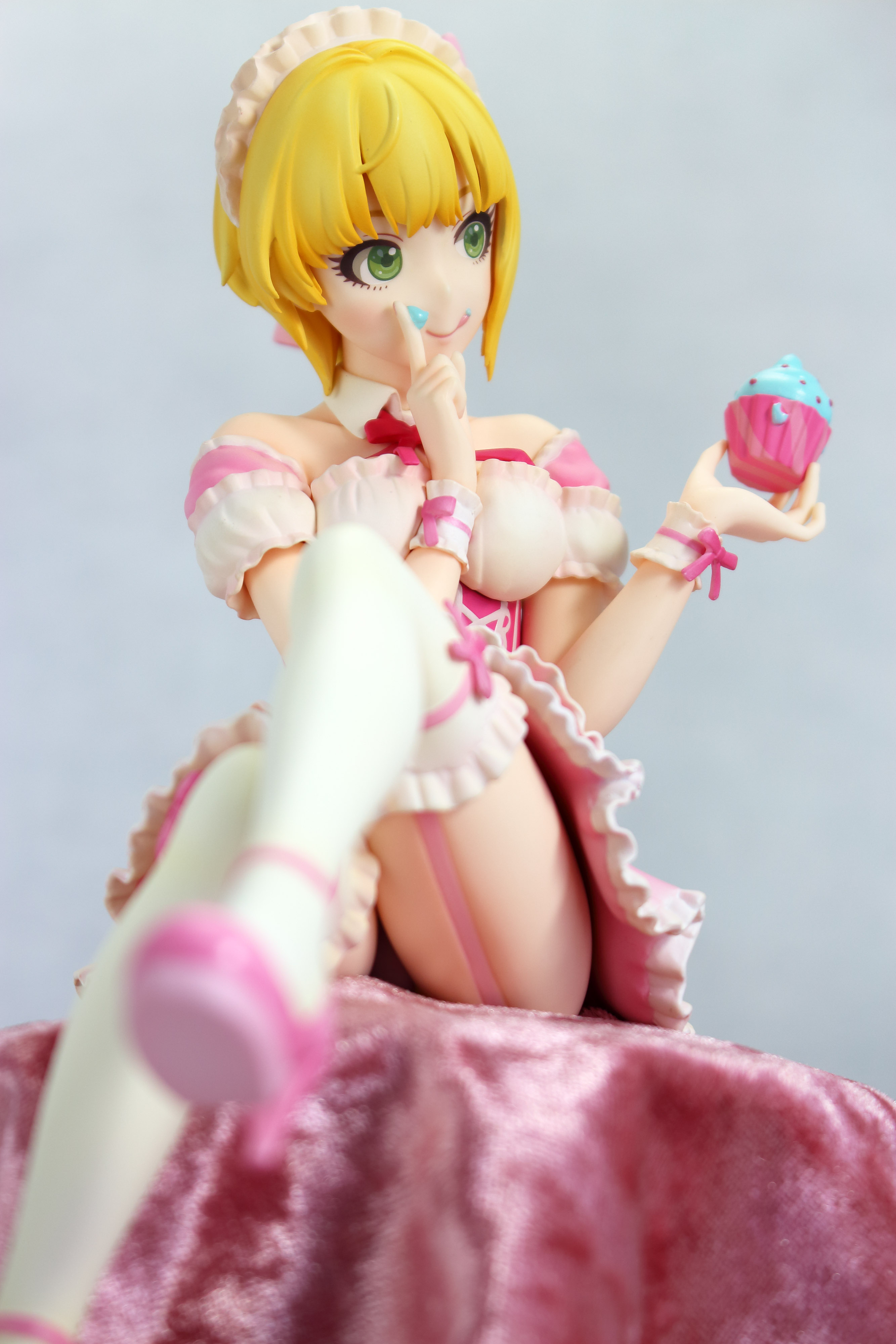 個人的残念ポイント 瞳が若干のっぺり(いつものファット) 足まわりの塗装(いつものファット) テーブルがテッカリ(面倒でなければ対処可能) ガーターが食い込む……というか埋まって…… とは言えやはり何時ものファットよりは綺麗に仕上がっていると思う。 飾って離れて観賞するなら十分かと | ||