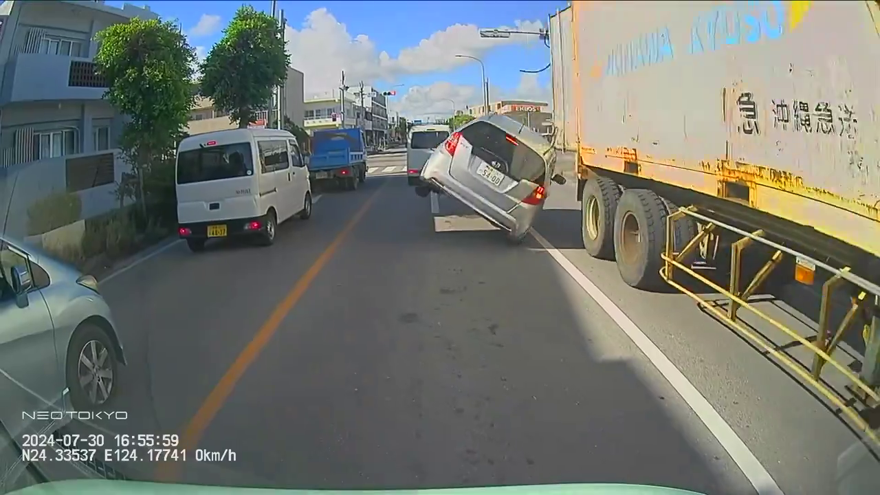トレーラーの後部扉が開いているのに気付かず、信号待ちの自動車をラリアットで吹き飛ばしてしまう : ホビログ ホビー系まとめサイト