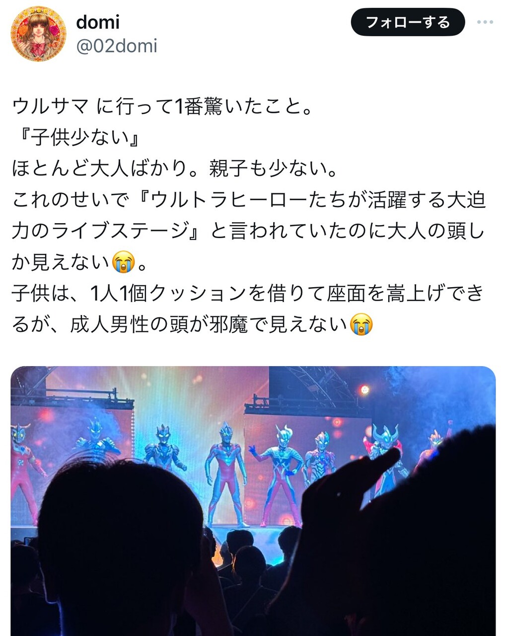 【悲報】母親「家族でウルサマに行ったら成人男性ばかりで舞台が見えない!家族連れじゃない大人は来るな!」 : ホビログ ホビー系まとめサイト