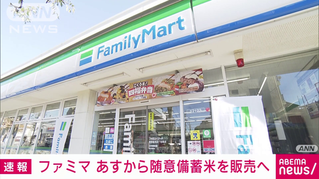 コンビニ大手の「ファミリーマート」は、随意契約で購入した備蓄米について、予定を前倒し、あすから販売を開始すると発表しました。