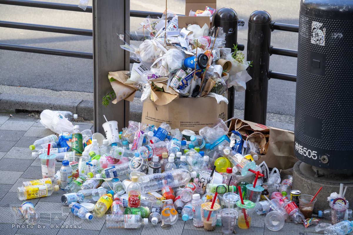 ゴミ箱需要高いことは明らかなのに、千代田区が頑なに設置しない。ゴミ箱置くと爆弾仕掛けられるとか言うけど、このゴミの山にだって隠せる