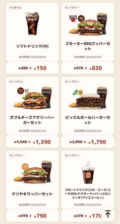 バーガーキングのアプリでクーポン使うとマックと変わらない値段で極上の体験が出来るのでお勧め。