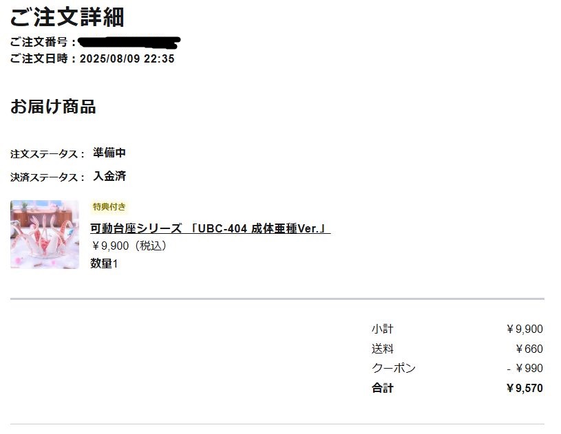 >盆休み前だからか爆速で届いた触手台座