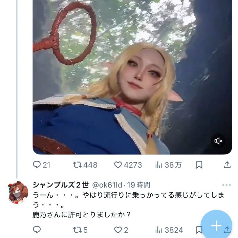 マルシルコスで大炎上した鹿乃つの氏(旦那とDVバレで再炎上)の信者さん、違うコスプレイヤーさんに向かって「マルシルのコスは鹿乃つのに許可を取れ」と言い放ち大炎上wwwww : ホビログ ホビー系まとめサイト
