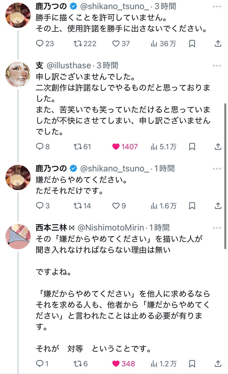 自分の二次絵が認めない態度から版元が二次創作に対する敬意とか都合のいい嘘だったんですね