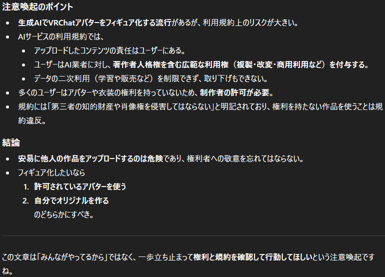 流行しているVRChatアバターのフィギュア化、出力する生成AIの規約にかなりやばい権利の記述が発見される……! : ホビログ ホビー系まとめサイト