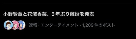 小野賢章と花澤香菜マジか。両名ともに超売れっ子ゆえのすれ違いは悲しいな。時折あげてた二人の写真が仲良さげだっただけに残念。